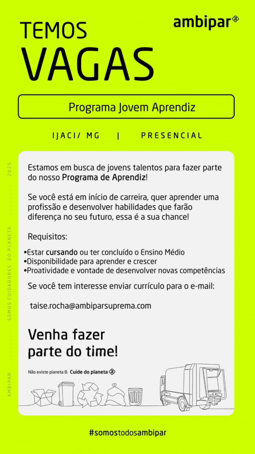 Estamos em busca de jovens talentos para fazer parte do nosso Programa de Aprendiz!