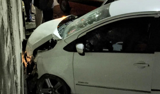 O veículo desceu a rua desgovernado e só parou ao atingir em cheio o muro da residência.
