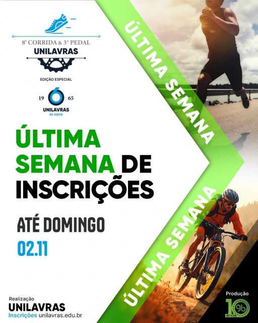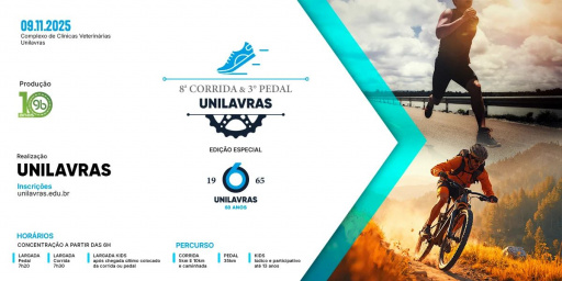 O Unilavras se prepara para mais uma edição de um dos eventos esportivos mais aguardados da cidade. A 8ª Corrida e o 3º Pedal Unilavras acontecem no dia 9 de novembro de 2025, a partir das 6h da manhã, no Campus 2, localizado no bairro Água Limpa. O encontro promete reunir corredores e ciclistas em uma manhã marcada por energia, superação e integração.