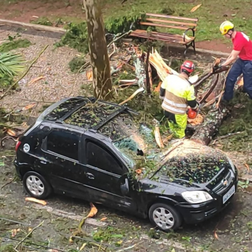 Vários vídeos estão publicados em canais de notícias e redes sociais, porém os bombeiros receberam 7 chamadas, iniciando pela queda de uma árvore sobre um veículo na praça Augusto Silva.