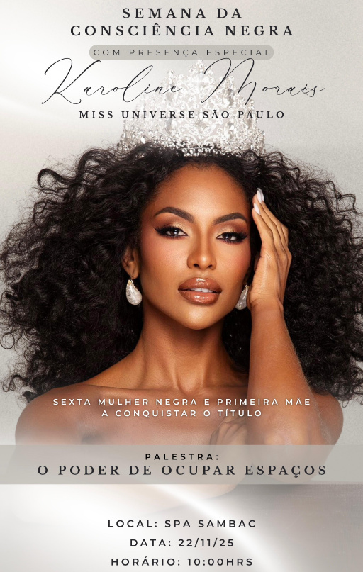A Semana da Consciência Negra em Lavras contará com a presença especial neste mês de novembro da Miss Universe São Paulo, Karoline Morais. Ela estará na cidade no dia 22 de novembro, para ministrar a palestra "O Poder de Ocupar Espaços", no SPA Sambac, a partir das 10h.