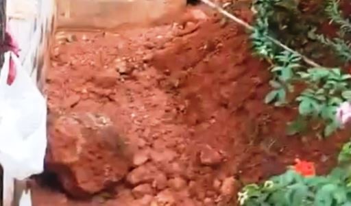 Uma pedra rolou e parou quando bateu na parede da casa, o barro também se acumula na parede. Foto extraída do vídeo da moradora do local
