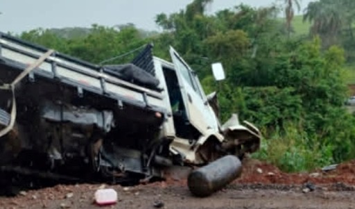 Ao chegar na curva que dá acesso à entrada do bairro Nova Era, o condutor não conseguiu manter o veículo na pista. O caminhão invadiu a entrada do bairro e, desgovernado, caiu no barranco lateral.