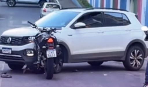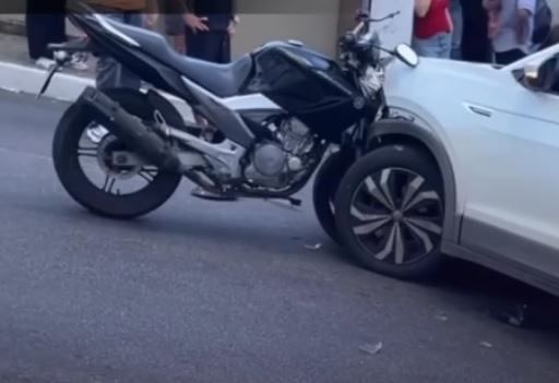 O motociclista, que trafegava pela avenida, não conseguiu desviar a tempo e colidiu violentamente de frente com o veículo. O impacto foi tão forte que a motocicleta ficou presa na lataria do SRV, enquanto o condutor foi arremessado ao solo.