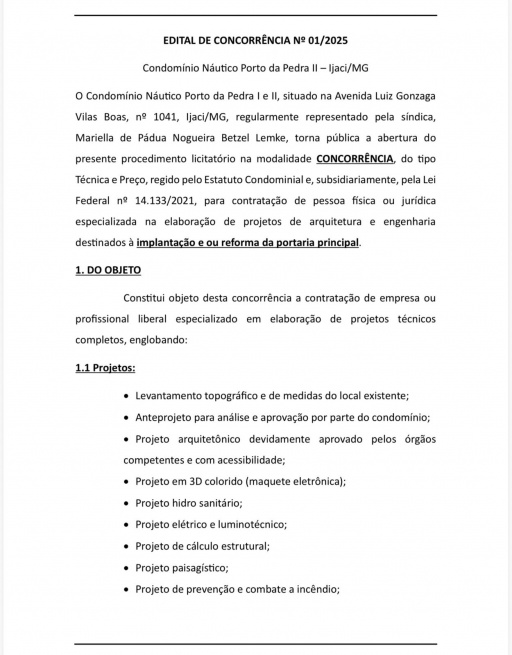 Jornal de Lavras - Publicação Oficial 01, de 01/12/25 - Condomínio Náutico Porto da Pedra II