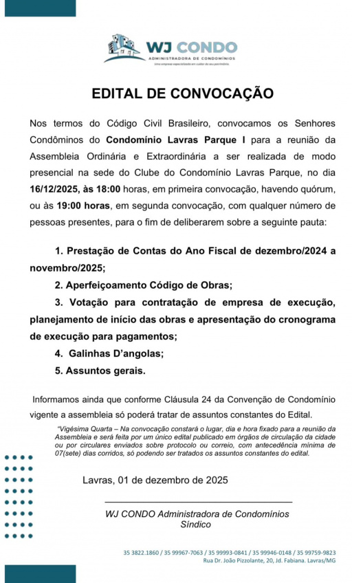 Jornal de Lavras - Publicação Oficial 03, de 01/12/25 - Condomínio Lavras Parque I
