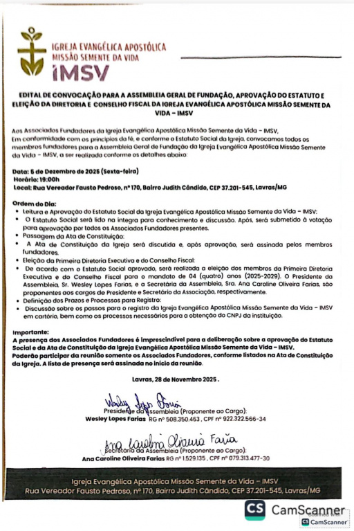Jornal de Lavras - Publicação Oficial 01, de 04/12/25 - Igreja Evangélica Apostólica Missão Semente da Vida
