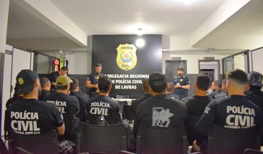 Investigadores recebem as orientações da operação anda na madrugada de hoje. Foto e informações: PCMG