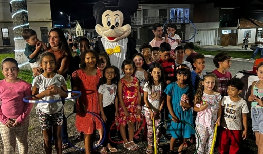 Mickey, Minnie, Amorito e o Papai Noel fizeram a alegria das crianças