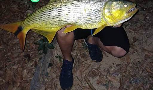 Pescador exibe exemplar de dourado capturado em local proibido