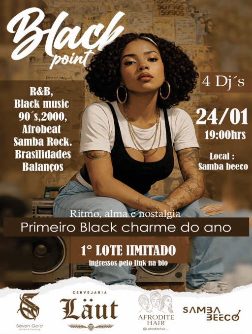 Segundo a organização, o Black Point evoluiu a partir da resposta do público às edições anteriores. Agora em formato fechado, o evento contará com quatro DJs, que irão conduzir a pista com uma seleção musical que passa pelo R&B, Black Music dos anos 90 e 2000, Afrobeat, Samba Rock e outras vertentes das brasilidades, mantendo a proposta de uma experiência que une ritmo, identidade e nostalgia.