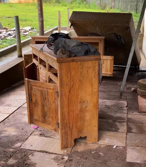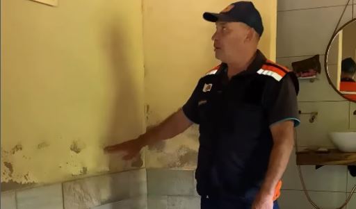 Coordenador da Defesa Civil mostra aonde a água chegou em uma das residências afetadas pela enchente