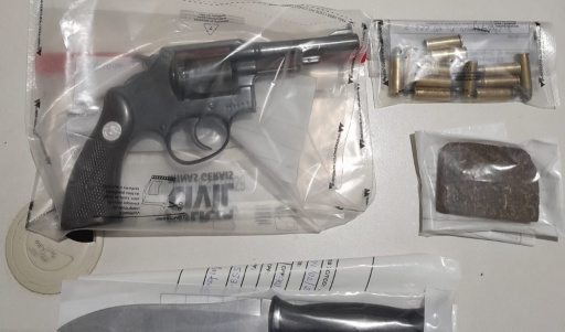 Durante a fuga, segundo a Polícia Militar, o suspeito arremessou um objeto pela janela do carro. No ponto indicado, os policiais localizaram um revólver calibre .38 municiado. No interior do veículo também foram encontradas munições deflagradas e intactas, reforçando os indícios do crime.