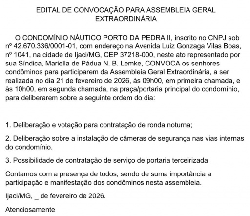 Jornal de Lavras - Publicação Oficial 01, de 10/02/26 - Condomínio Porto da Pedra II