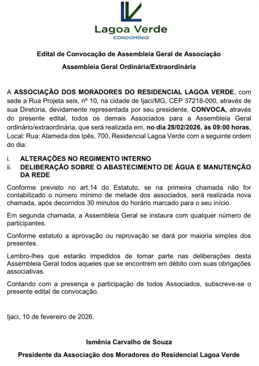 Jornal de Lavras - Publicação Oficial 03, de 10/02/26 - Associação dos Moradores do Residencial Lagoa Verde