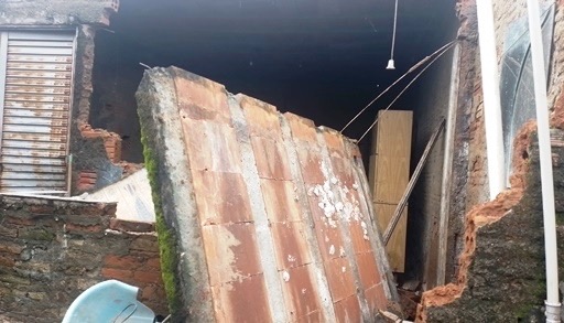 Hoje, quinta-feira, dia 12, o Jornal de Lavras esteve no local de uma ocorrência registrada ontem, apenas 24 horas após o primeiro incidente, onde outra casa foi atingida por desabamento e testemunhou a destruição (fotos). Foi na rua Maria Cândida da Fonseca, no bairro Nossa Senhora de Lourdes II. O estrondo da queda assustou a vizinhança, que acompanhou a ocorrência com apreensão.