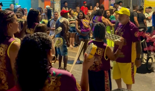 Às 17h os integrantes da escola de samba Acadêmicos da Zona Sul começam a se reunir, preparando as fantasias e o samba no pé para o grande momento.