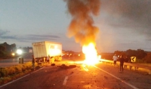Segundo as primeiras informações, a ocorrência envolveu duas carretas e uma caminhonete. Após a colisão, a caminhonete incendiou.