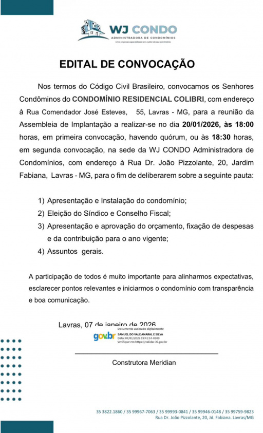 Jornal de Lavras - Publicação Oficial 01, de 12/01/25 - Condomínio Residencial Colibri