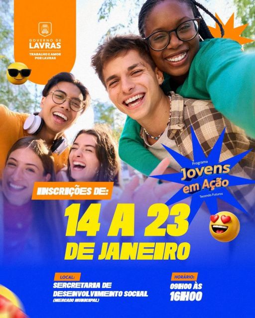 Começaram dia 14 e vão até esta sexta-feira, dia 23 de janeiro, as inscrições para a seleção pública do Programa Jovens em Ação, iniciativa socioeducativa que vai ofertar 60 vagas para adolescentes de 15 a 17 anos, além da formação de cadastro de reserva.