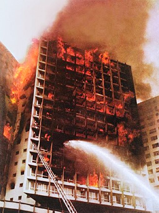 Fevereiro também concentra outros incêndios emblemáticos da capital paulista. Em 24 de fevereiro de 1972, o Edifício Andraus, na avenida São João, foi consumido pelo fogo após uma sobrecarga elétrica no segundo andar. O prédio de 32 andares registrou 16 mortes e 330 feridos, incluindo executivos de multinacionais alemãs (Imagem 4).