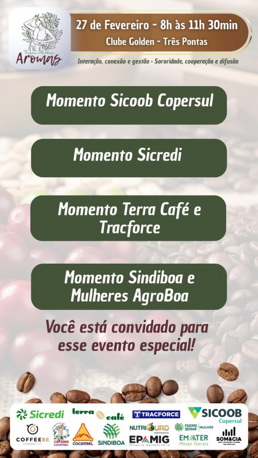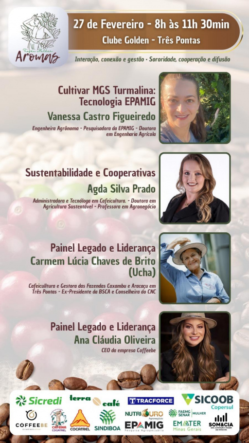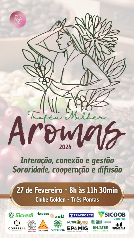 Três Pontas receberá, nesta sexta-feira 27 de fevereiro, das 8h às 11h30, no Clube Golden, o Encontro Aromas 2026, uma iniciativa que coloca em evidência a atuação estratégica das mulheres na construção de um agronegócio mais eficiente, inovador e sustentável.