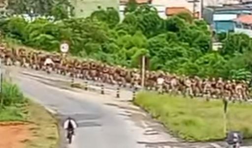 [Conteúdo ORIGINAL do Jornal de Lavras, com vídeo obtido em encaminhamento] Quem transitou pelas imediações do bairro Cidade da Serra e pelo trecho urbano da BR-265 nas primeiras horas desta quinta-feira, dia 26 de fevereiro, deparou-se com uma cena impactante. Centenas de policiais militares foram avistados em um deslocamento coordenado, caminhando em fila dupla, apresentando sinais visíveis de exaustão e superação.