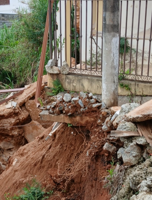 Logo após o desastre de 2025, o cenário parecia caminhar para uma solução. A Defesa Civil isolou a área, emitiu laudos técnicos e condenou duas residências que apresentavam danos estruturais graves (foto 1). O Secretário Municipal de Obras, Robert Vilas Boas, chegou a acompanhar as vistorias pessoalmente. No entanto, o que se viu nos meses seguintes foi o avanço do silêncio administrativo em vez das máquinas de reparo.