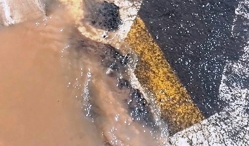 Grande quantidade de água do vazamento espalhou pela via e escorreu para o ribeirão. Fotos: Jornal de Lavras