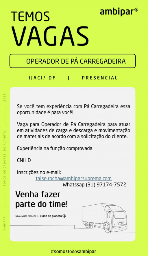 Se você tem experiência com Pá Carregadeira essa oportunidade é para você!