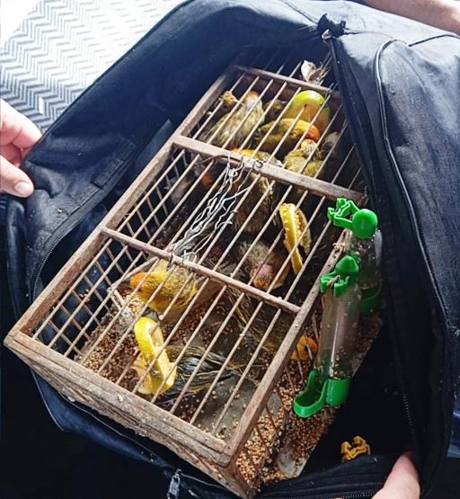 Os bandidos acondicionam os pássaros em cubículos para poder viajar de um estado para outro, muitos chegam mortos
