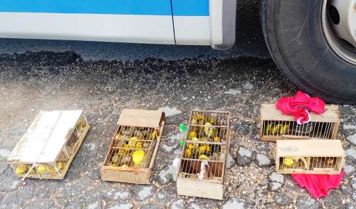 Após receberem denúncias anônimas sobre passageiros de um ônibus com destino a Belo Horizonte que estariam transportando animais para o comércio ilegal, os militares realizaram a abordagem no km 576. Durante a inspeção das bagagens, a equipe deparou-se com uma cena de maus-tratos: dezenas de aves estavam amontoadas em condições precárias, sem ventilação, água ou alimentação, evidenciando a crueldade inerente a essa prática criminosa.