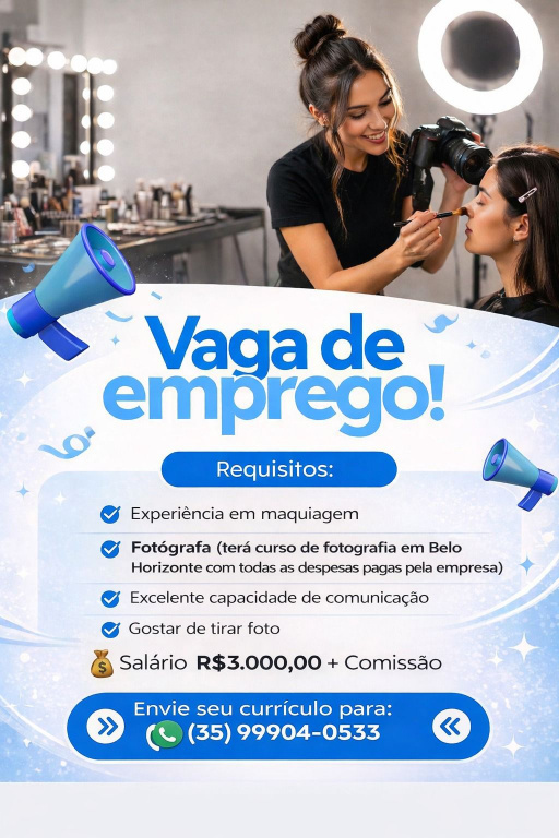Vaga: Maquiadora com Oportunidade de Formação em Fotografia
