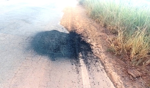 Buraco em que motociclista caiu foi fechado, mas serviço não foi realizado com perícia. Fotos: Jornal de Lavras