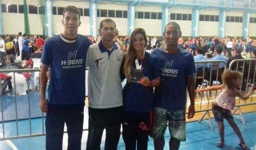 O atleta David Eduardo, o mestre Valdeci Zampieri, e os atletas Thallita Fabrino e Matheus Dias
