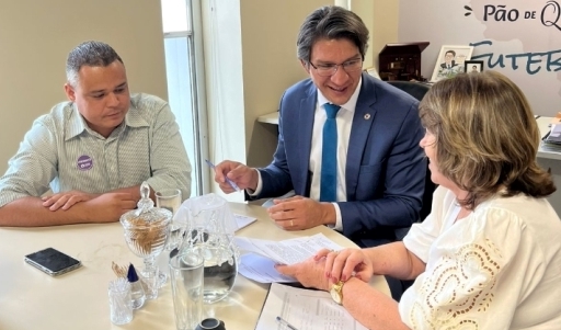 Vereador João Paulo Felizardo, deputado Vitório e Maria Luíza, da escola Impacto