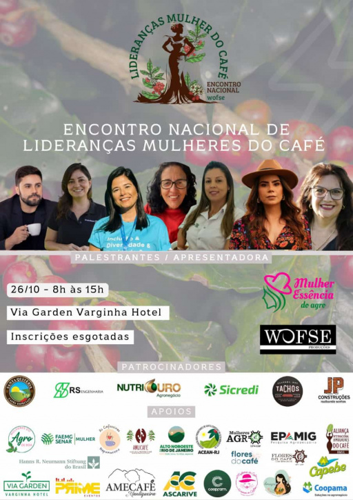 Neste sábado, dia 26, Varginha receberá o Encontro Nacional de Lideranças Mulheres do Café 2024, no Salão de Eventos do Via Garden Varginha Hotel. As inscrições foram encerradas e esgotadas.