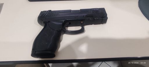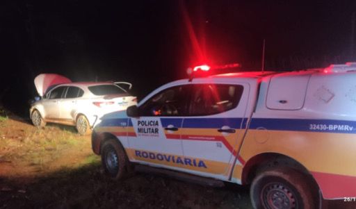 Durante vistoria no automóvel que estava com a placa RTD5I28, A PM constatou diversas evidências de adulteração, sendo confirmado após diligências, ser na verdade, o veículo Fiat/Cronos, cor branca, de placas RUD0A12, que foi furtado em Belo Horizonte. No interior da residência foi localizado um simulacro de arma de fogo, que foi apreendido.
