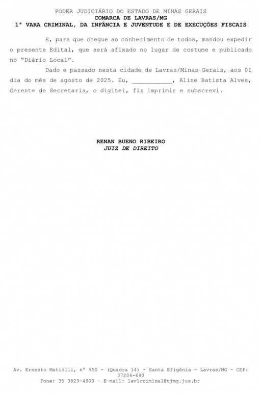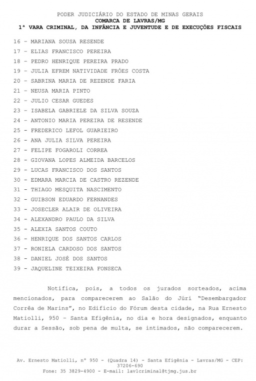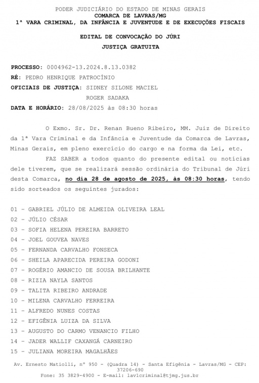 Jornal de Lavras - Publicação Oficial 01, de 07/08/25 - Convocação do Júri