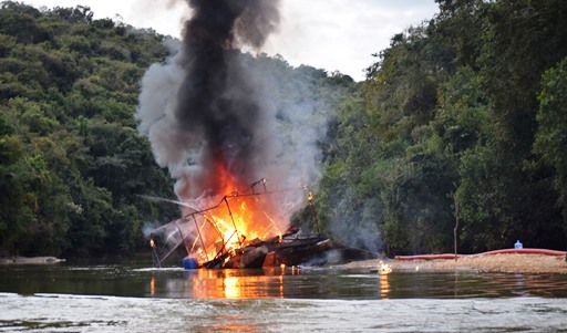 Balsas foram explodidas pela força-tarefa ontem e na madrugada de hoje