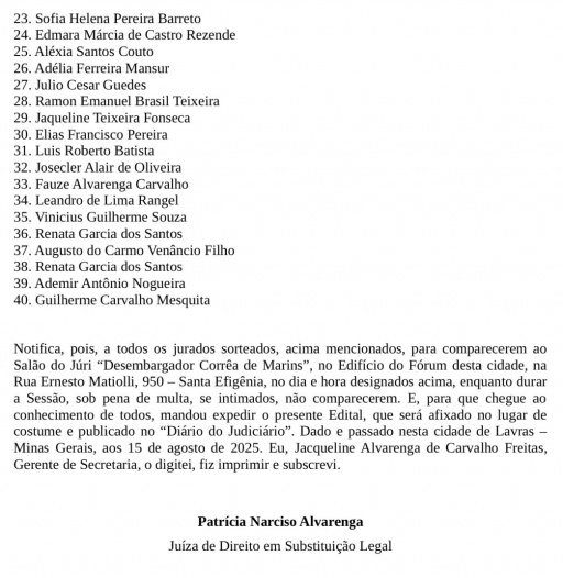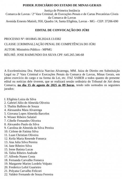 Jornal de Lavras - Publicação Oficial 01, de 14/08/25 - Convocação do Júri
