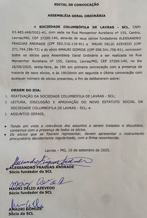 Jornal de Lavras - Publicação Oficial 01, de 15/09/25 - Sociedade Columbófila de Lavras