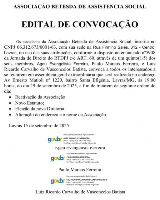 Jornal de Lavras - Publicação Oficial 01, de 19/09/25 - Associação Betesda