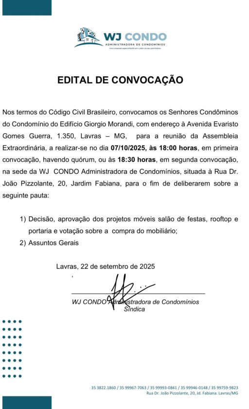 Jornal de Lavras - Publicação Oficial 01, de 22/09/25 - Condomínio Giorgio Marandi