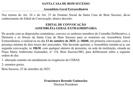 Jornal de Lavras - Publicação Oficial 01, de 26/09/25 - Santa Casa de Bom Sucesso