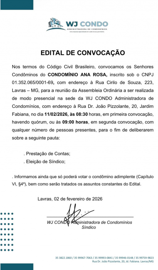 Jornal de Lavras - Publicação Oficial 01, de 02/02/26- Condomínio Ana Rosa
