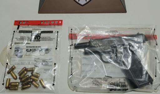 Com a identificação em mãos, as equipes realizaram diligências e localizaram o suspeito em sua residência. Ele recebeu voz de prisão em flagrante por porte ilegal de arma de fogo.