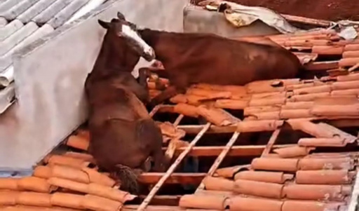 De acordo com os Bombeiros, os militares foram acionados após moradores perceberem que os animais haviam despencado sobre a cobertura do imóvel. Testemunhas relataram que os cavalos pastavam em um terreno localizado em nível mais alto que a residência e, em determinado momento, acabaram caindo sobre o telhado.